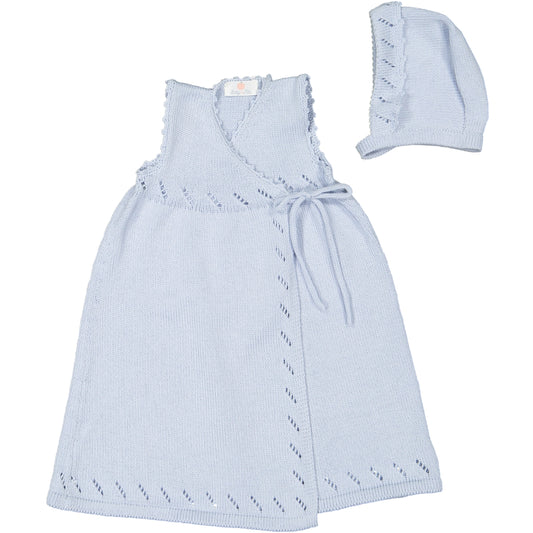 Cueiro com touca bordado à mão - Azul
