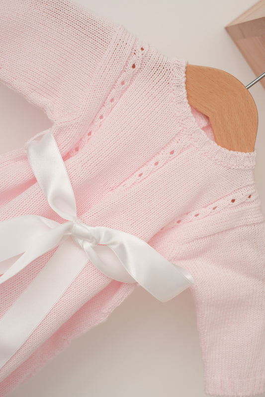 Cueiro com touca Rosa com bolas bordadas