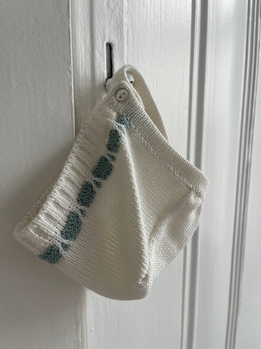 Cueiro com touca bordado à mão - Verde Água