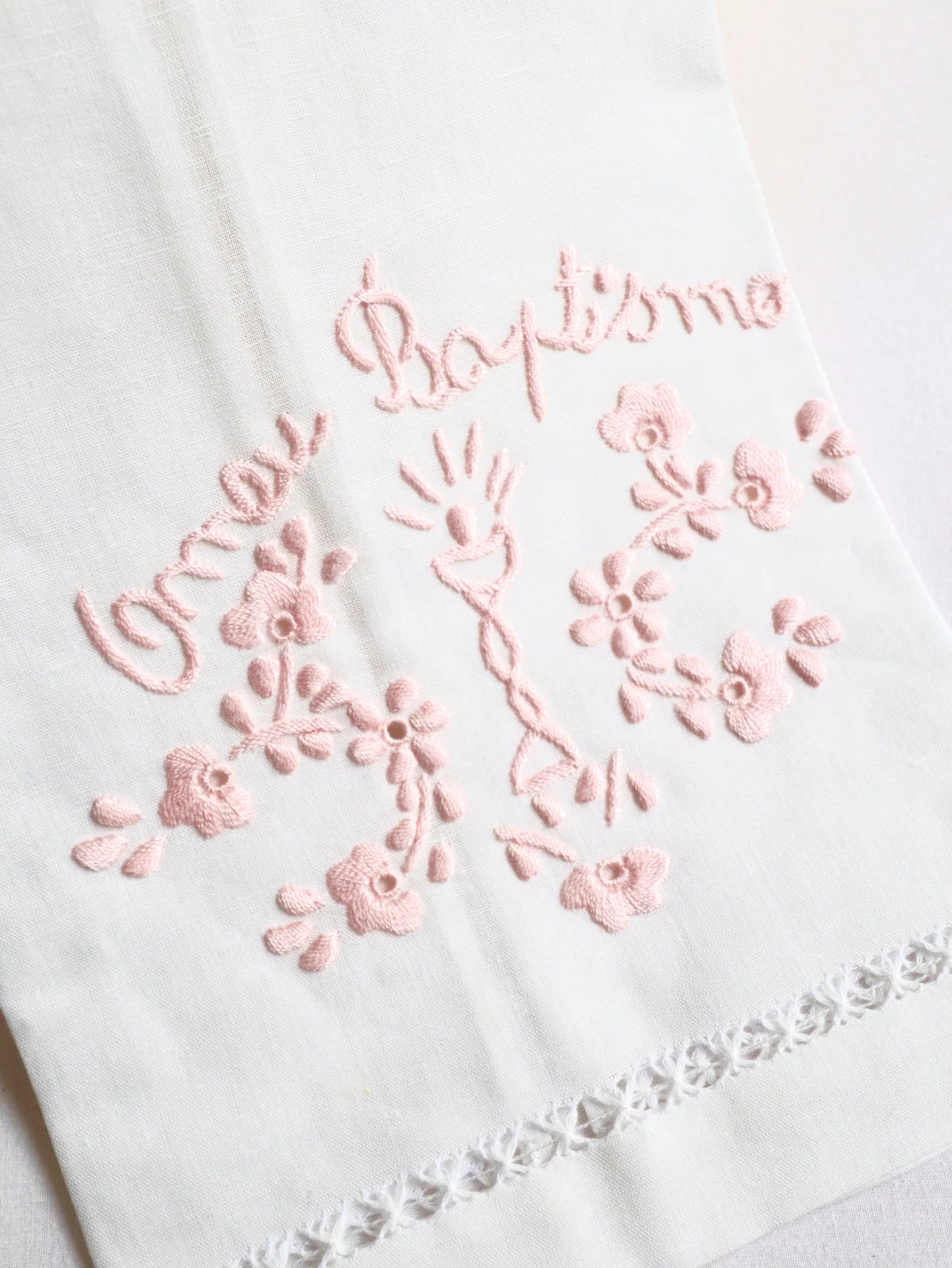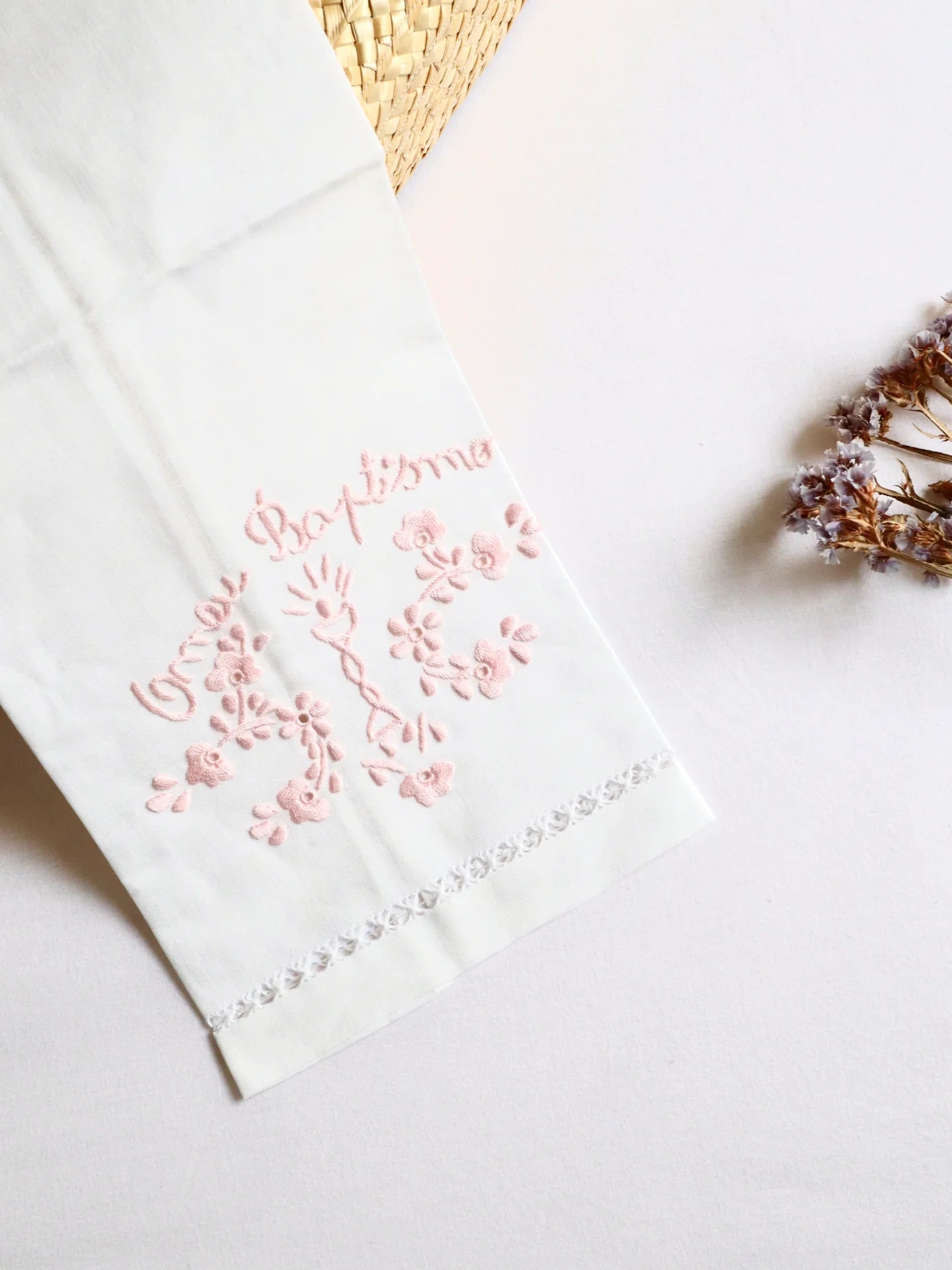 Toalha de Batismo lisa com bordado rosa ou azul.