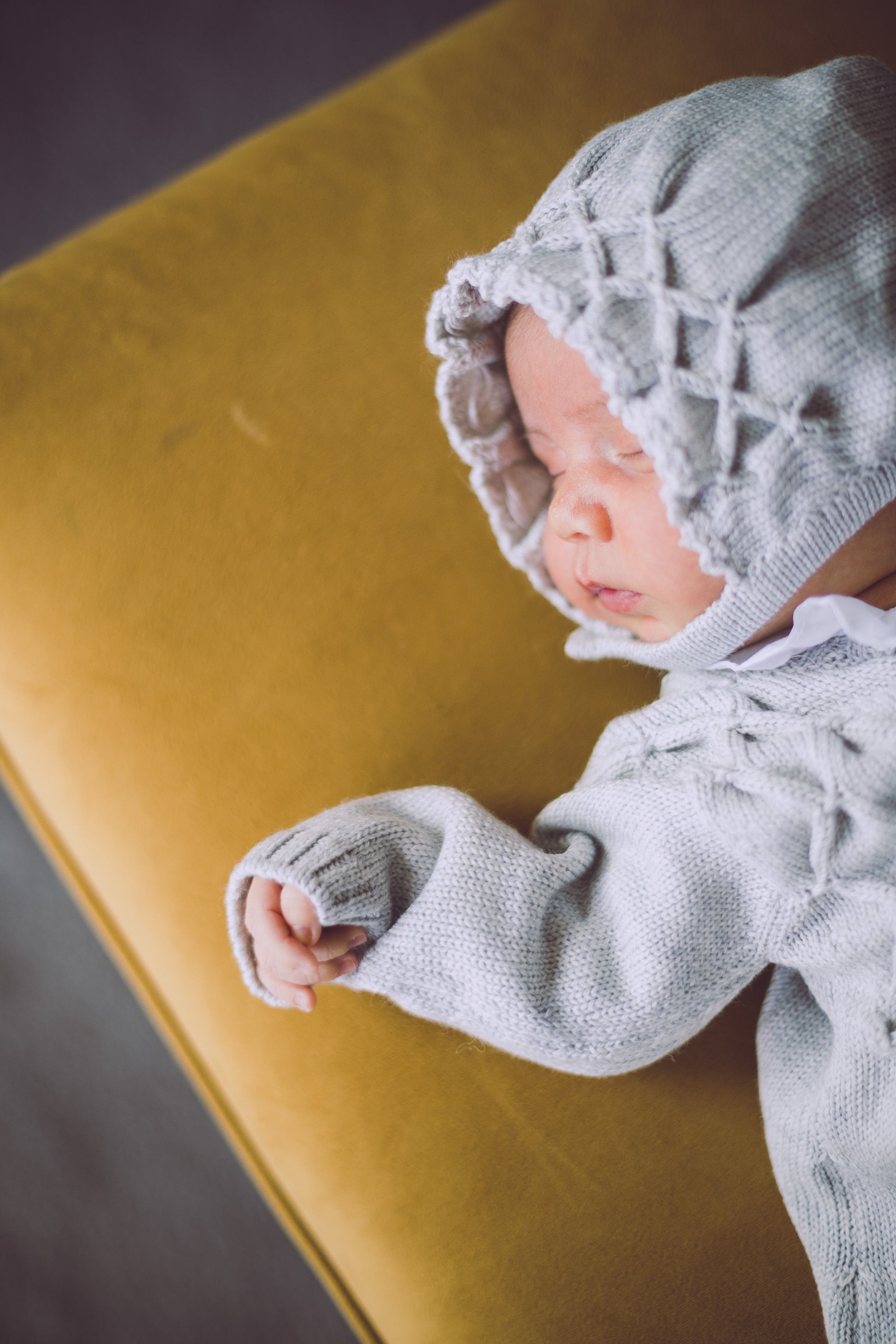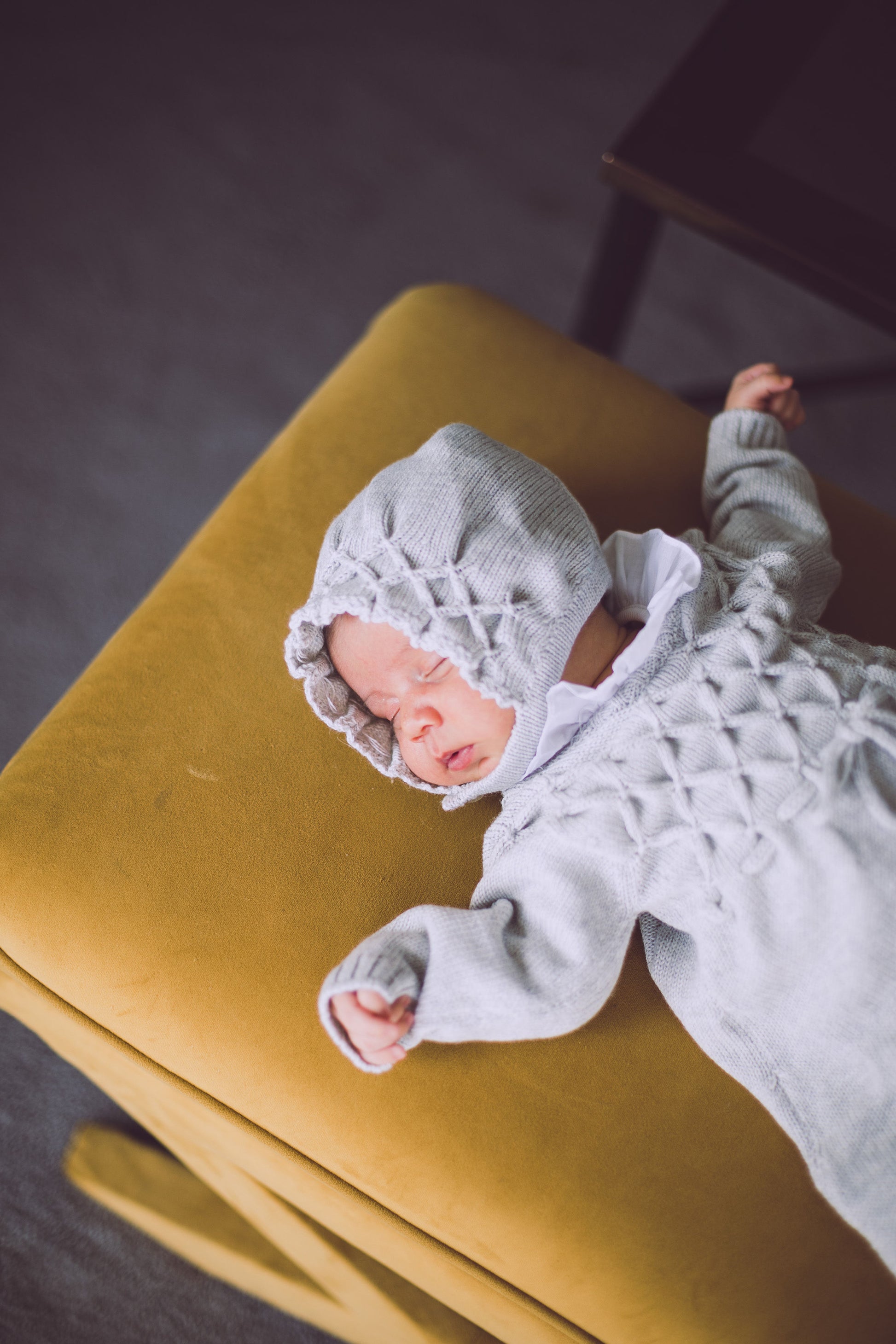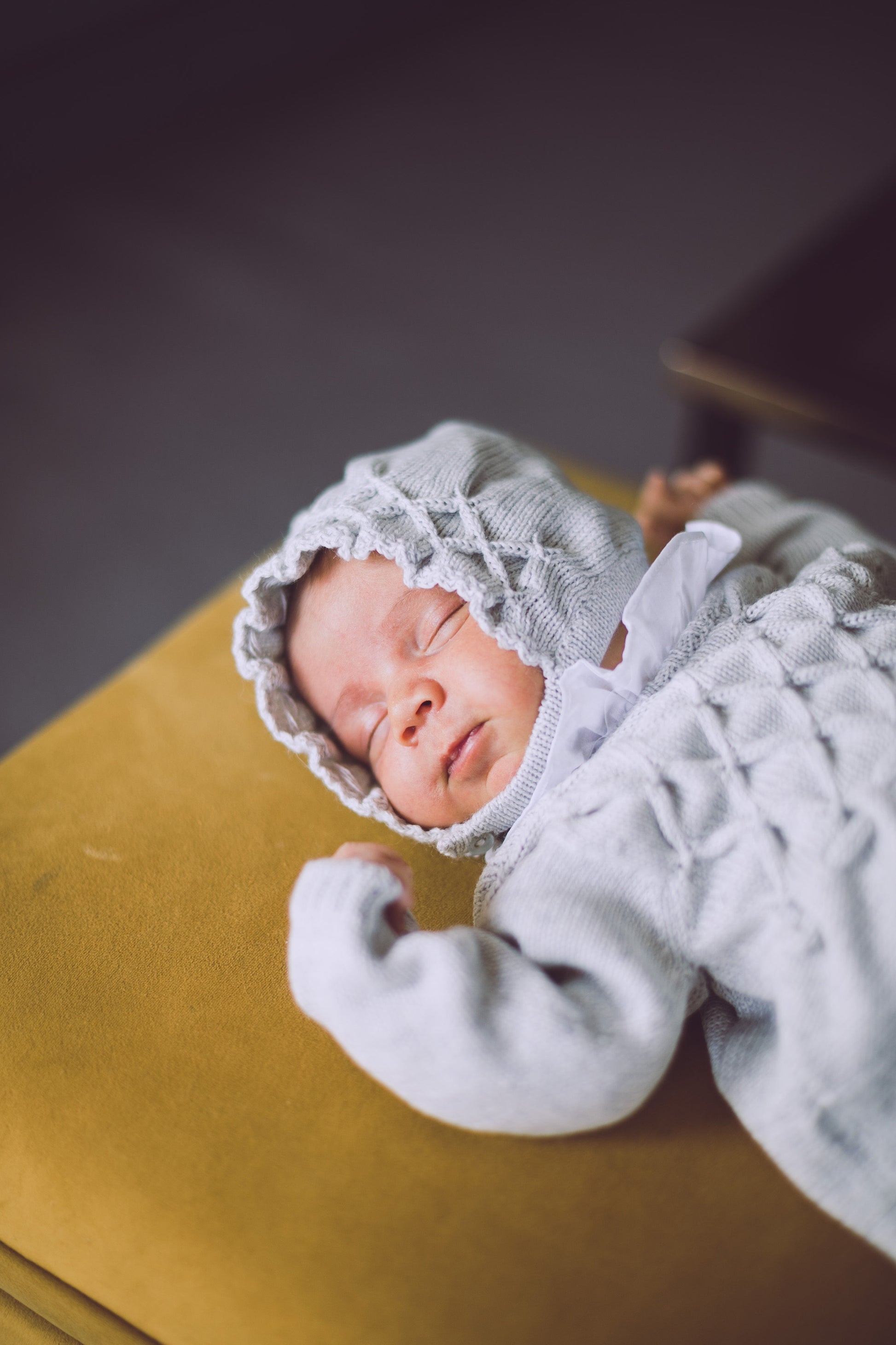 Cueiro e touca em lã com favinhos (70% lã merino | 30% dralon).