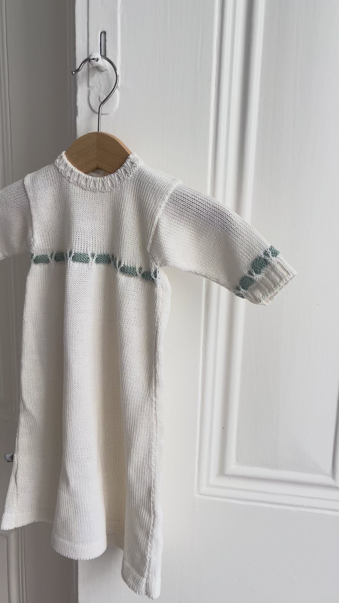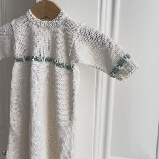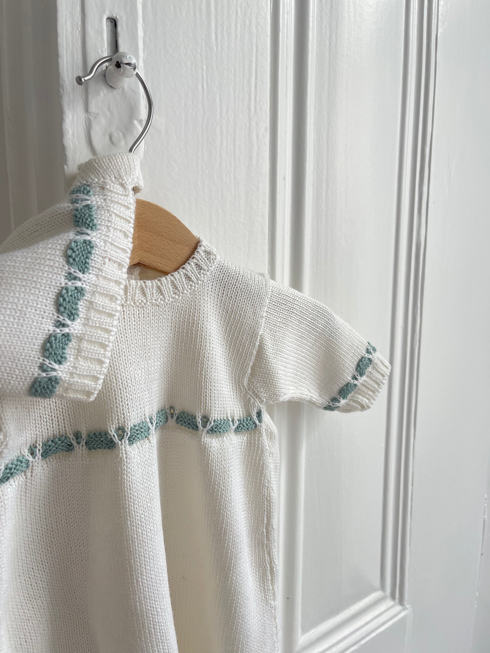 Cueiro e touca em com bordado verde àgua (70% lã merino | 30% dralon).